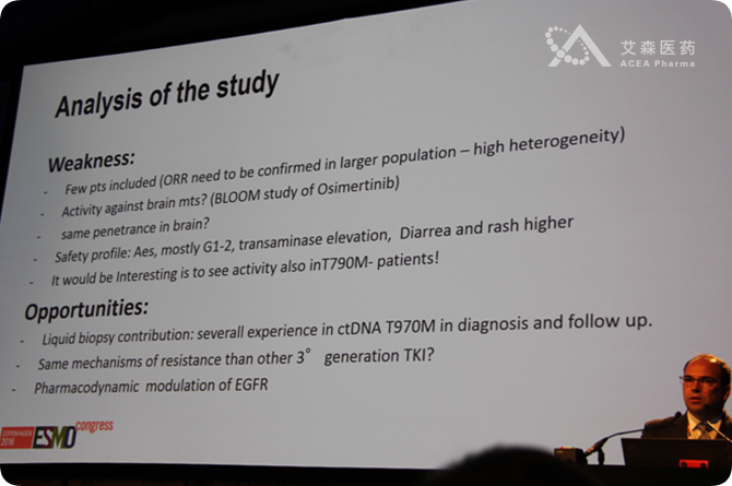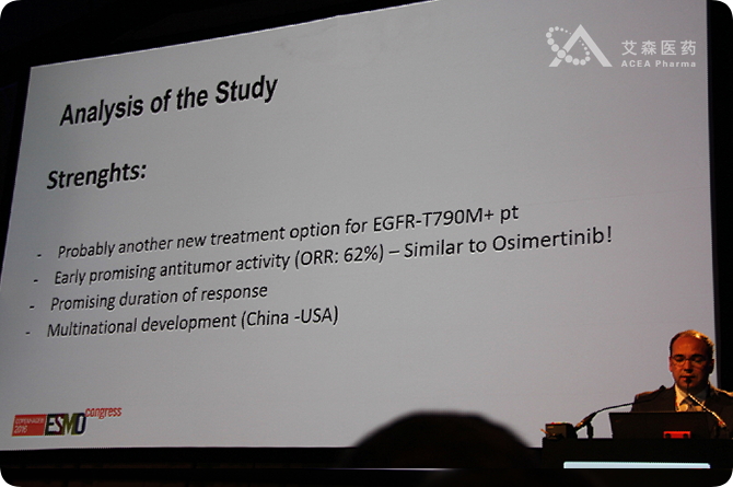 来自比利时的C.Rolfo教授在随后的研究讨论中,对该项研究进行了具体的点评,认为研究结果的公布或为EGFR-T790突变阳性患者提供了新的治疗选择。数据与Osimertinib结果相似,显示出较为有效的治疗有效率和缓解时间。